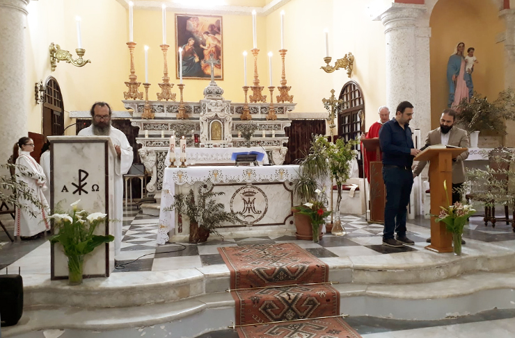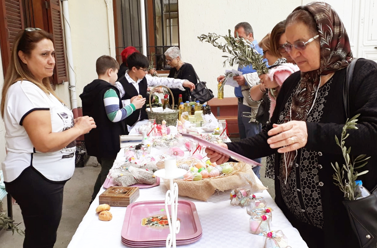 Kilise bahçesinde başlayan ayinde, ilk olarak hazırlanan zeytin dalları kutsandı ve ardından cemaat üyelerine dağıtıldı. Episkopos Bizzeti ve cemaat üyeleri, ellerinde zeytin dalları ve çiçekler olmak üzere, ilahiler söyleyerek bir süre bahçe içerisinde dolaştılar, daha sonra da kilise içerisine girdiler. Kilise içerisinde devam eden ayinde vaaz veren Anadolu Havarisel Vekili ve Episkoposu Monsenyör Bizzeti, konuşmasında sevginin öneminden söz etti.