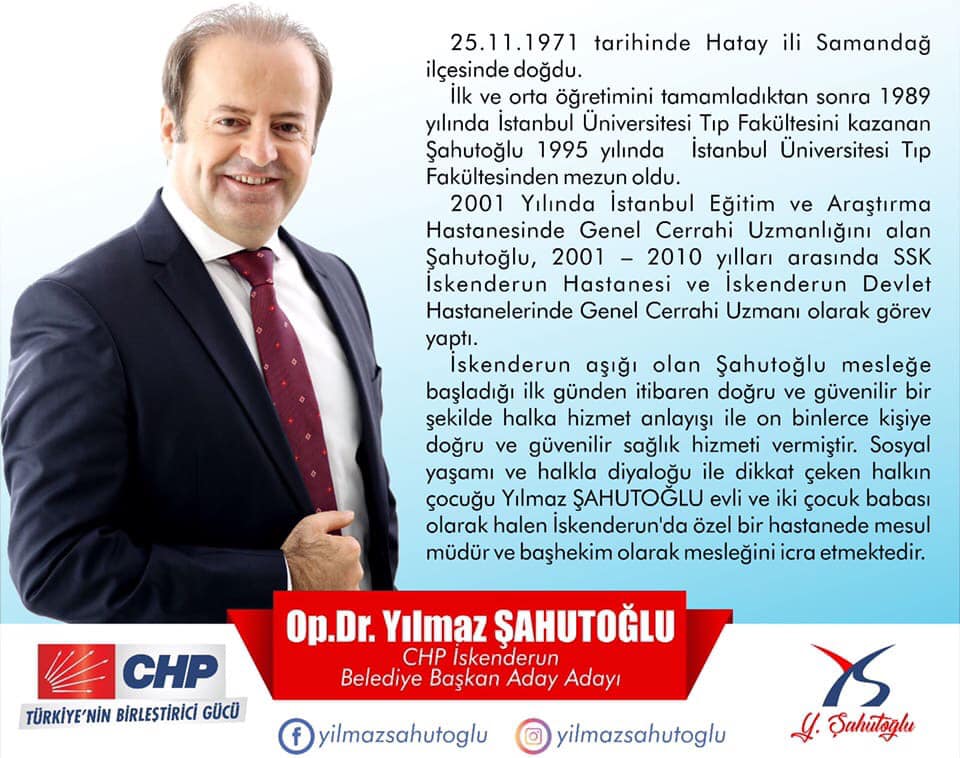 Mesleğe başladığı ilk günden itibaren doğru ve güvenilir bir şekilde halka hizmet anlayışı ile on binlerce kişiye sağlık hizmeti veren, sosyal yaşamı ve halkla diyalogu ile dikkat çeken ve bu özellikleri ile İskenderunlular tarafından kendilerinden biri olarak sevilip benimsenen İskenderun aşığı Şahutoğlu’nun adaylığının kesinleştiği halk arasında yoğun bir şekilde dillendiriliyor.