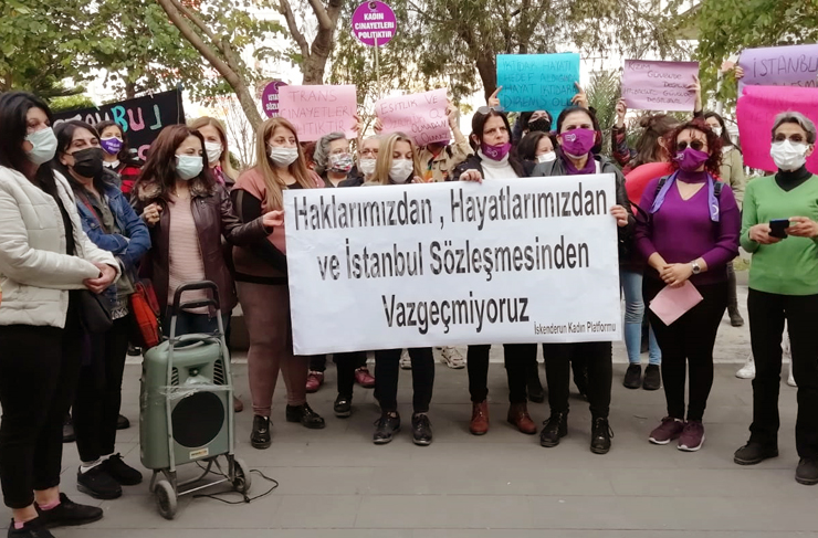 İstanbul Sözleşmesinden ayrılma kararı İskenderun Kadın Platformu tarafından protesto edildi. Konuyla ilgili açıklama yapan Kadın Platformu Yürütme Kurulu Üyesi Filiz Aratemur Yeşildağ, İstanbul Sözleşmesinden vazgeçmeyeceklerini, yazılı hukuktan doğan tüm hakları kullanmaya devam edeceklerini kaydetti.