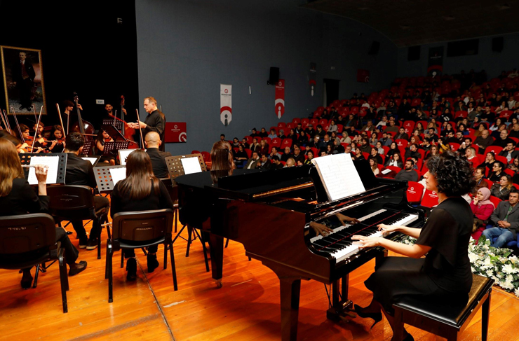 Dinleyiciler, “Scherzo”, “Elegie” ve “Ballad” eserlerinden oluşan müthiş bir piyano dinletisine tanıklık etti. Üçüncü ve son bölümde; İSTE Dr. Öğretim Üyesi Okay Özdağ’ın gitarı eşliğinde, İSTE Öğretim Görevlisi Berna Bilgin özgün sesiyle ve kendine has tarzıyla dinleyenleri adeta büyüledi. Bu bölümde; Türk müziğinin eşsiz eserlerinden “Sabahın Seherinde”, “Gesi Bağları”, “Sarı Gelin”, “Hasret” ve “Zülüf” parçaları seslendirildi.