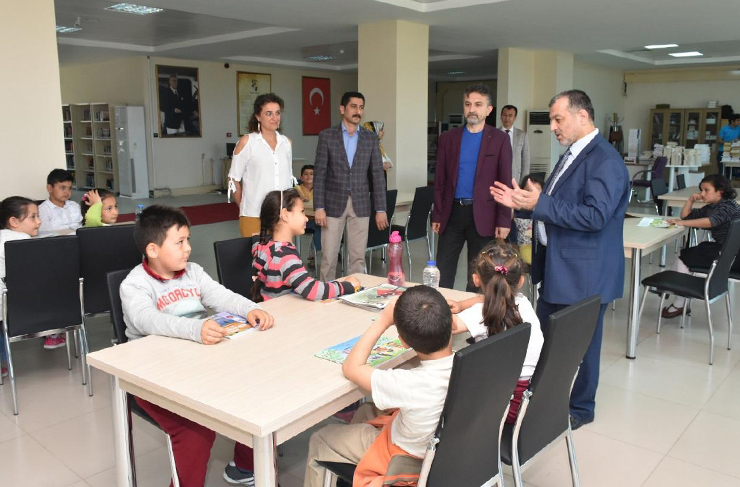 Kütüphanede kitap okuyan, bilmece yarışı oynayan miniklerin ziyareti, hatıra fotoğrafları çekilmesinin ardından sona erdi.