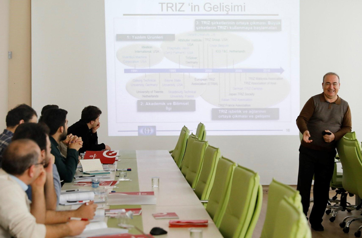 TRIZ’ın tarihçesi, gelişimi ve geldiği son nokta hakkında bilgi veren Prof. Dr. Kapucu; “Günümüzde güncellenen üretim ortamlarında işletmelerin rekabet edebilmeleri için yenilikçi olmaları gerekmektedir. İşletmeler yeniliklere ve yenilikçi düşünceyi teşvik etmeye odaklı olmazlarsa sektörde tutunamazlar. Ancak buradaki temel sorun bu yaratıcı ve yenilikçi fikirlerin nasıl üretileceğidir. İşte tam bu noktada TRIZ işin içine girmektedir. TRIZ; gelişigüzel fikir toplanması üzerine kurulmuş beyin fırtınası ve benzeri gibi tekniklerin aksine; eski sistemlerin iyileştirilmesi ya da yeni sistemlerin tasarlanması için bilgi ve teknoloji tabanlı sistematik yaklaşımları kullanır. Bu yüzden eldeki verilerin en iyi şekilde değerlendirilmesine dayanır.