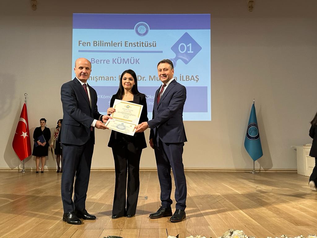 Bu yıl “97. Yıl En Başarılı Doktora Tezi Ödülleri” kapsamında Gazi Üniversitesi Sağlık Bilimleri Enstitüsü, Fen Bilimleri Enstitüsü, Eğitim Bilimleri Enstitüsü ve Bilişim Enstitüsü bünyesinde 2023 yılında tamamlanan tezler değerlendirildi. Bu kapsamda İSTE’li Dr. Öğr. Üyesi Berre Kümük’ün Fen Bilimleri Enstitüsünde Prof. Dr. Mustafa İlbaş danışmanlığında tamamladığı “Kömür Gazı Yakıtlı Katı Oksit Yakıt Pillerinin Sayısal ve Deneysel İncelenmesi” tezi birincilik ödülüne layık görüldü.
