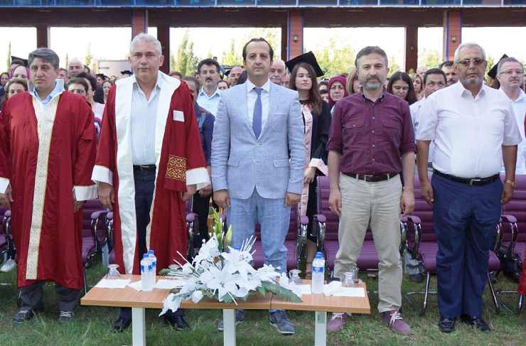 İnşaat Fakültesi adına konuşan Doç. Dr. Fatih Üneş, amaçlarının öncü bir üniversite olmak olduğunu belirterek; “Üniversitelerin amacı meslek becerilerin kazandırılmasının yanında araştırmaya yönelterek, üretime katkı sağlayacak bireyler yetiştirilmesidir” dedi ve mezunlara tavsiyelerde bulundu.