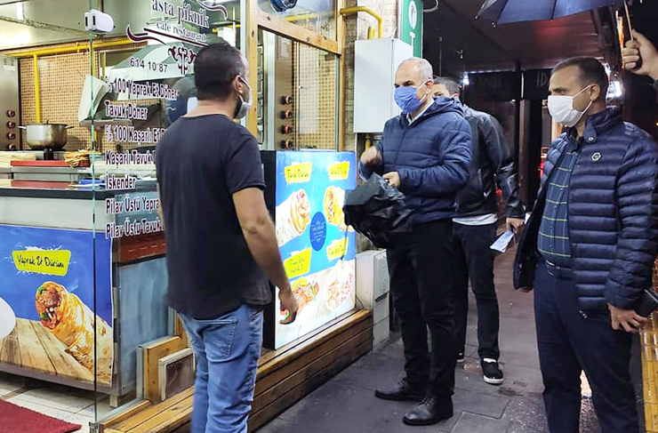 İskenderun Kaymakamı İskender Yönden, beraberinde İlçe Emniyet Müdürü Nevzat Güneş olmak üzere kent genelindeki işyerlerine ilişkin denetim gerçekleştirdi. Cumhurbaşkanı Recep Tayyip Erdoğan’ın talimatlarıyla 4 Kasım 2020 gününden itibaren uygulamaya konulan “İşyerlerinin en geç saat 22.00’de kapatılması” kararı ile maske, sosyal mesafe, temizlik vb. kurallara riayet edilip edilmediği kontrol edildi. İlçemizdeki bazı işyerlerini ziyaret eden Kaymakam İskender Yönden, pandemi sürecinde alınan tedbir ve kararlara harfiyen riayet edilmesine yönelik uyarılarda bulundu. (Haber Merkezi)