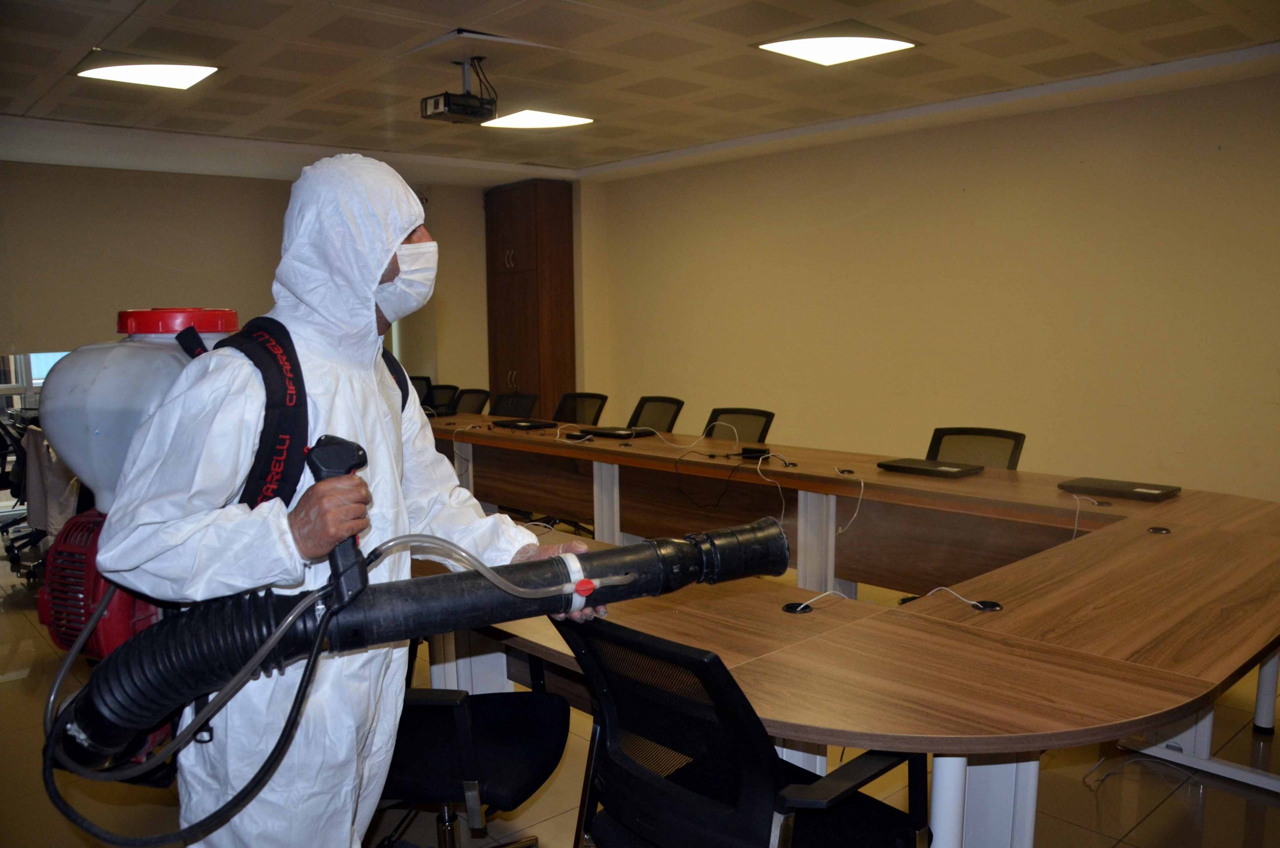 İskenderun Ticaret ve Sanayi Odasında, Coronavirüs (Covid-19) riskine karşı alınan tedbirler kapsamında, İskenderun Belediyesi ekipleri tarafından dezenfeksiyon ve sterilizasyon çalışmaları gerçekleştirildi.