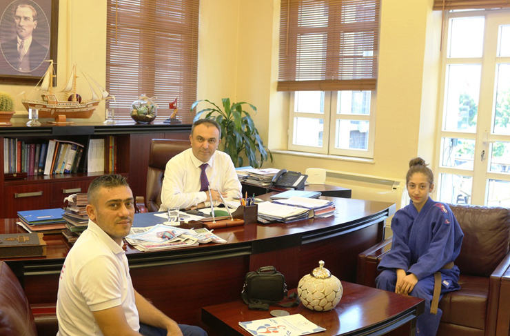 Türkiye Judo Federasyonu tarafından, 14-16 Temmuz 2017 tarihleri arasında Aksaray İlinde düzenlenen ‘Demokrasi Şehitleri Türkiye Yıldızlar Judo Şampiyonası’nda 40 kg.’da 3’üncü olan Dilek Uçarlar, İskenderun Halk Eğitim Merkezi Judo Antrenörü Ali Uçarlar ile birlikte İlçemiz Kaymakamı Recep Soytürk’ü makamında ziyaret etti.