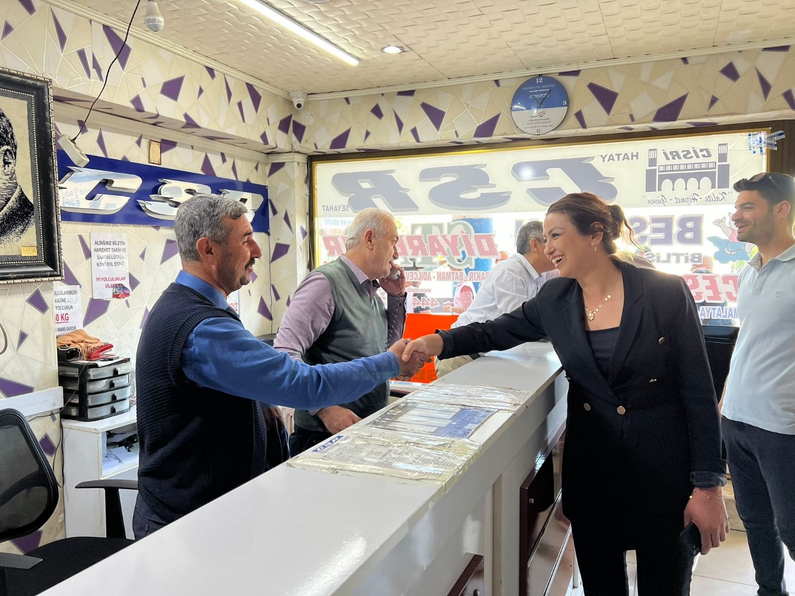 Seçim çalışmaları kapsamında ziyaretlerini sürdüren CHP Hatay Milletvekili Adayı Nermin Yıldırım Kara, Esnaf odalarının depremden sonra geçici olarak halka hizmet verdikleri konteyner alanına giderek oda başkanları ile bir araya geldi.