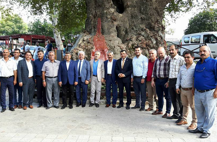 Ak Parti heyeti daha sonra Samandağ Hıdırbey Mahallesinde küçük bir gezinti yaparak, Tarihi Musa Ağacını ziyaret ettiler. (Haber: İlyas Edip TERBİYELİ)