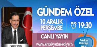 Vali Ercan Topaca Antakya Belediye Tv’nin Canlı Yayın Konuğu Olacak