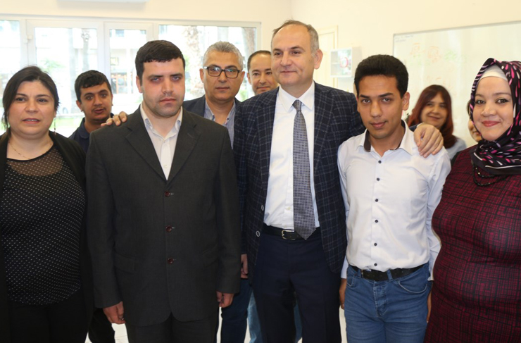 Engelsiz Atölyede Çarşamba günü düzenlenen kahvaltı programına iştirak eden İskenderun Kaymakamı İskender Yönden, Atölye Sorumlusu Kadir Kavas, Kursiyer Temsilcisi Şevki Abay, Kurs Eğitmeni ve kursiyerlerle birlikte sohbet de etti.