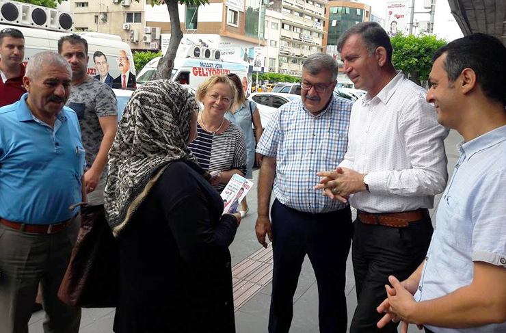 24 Haziran erken seçimlerine günler kala çalışmalarını ara vermeden sürdüren Cumhuriyet Halk Partisi Hatay Milletvekili Adayı Dr. Riyat Kırmızıoğlu, yoğun seçim çalışmalarının önemli bir bölümünü halkla iç içe ve esnaf gezileriyle sürdürürken, sıkmadık el, girmedik gönül bırakmamak kararlılığıyla emin adımlarla ilerliyor.