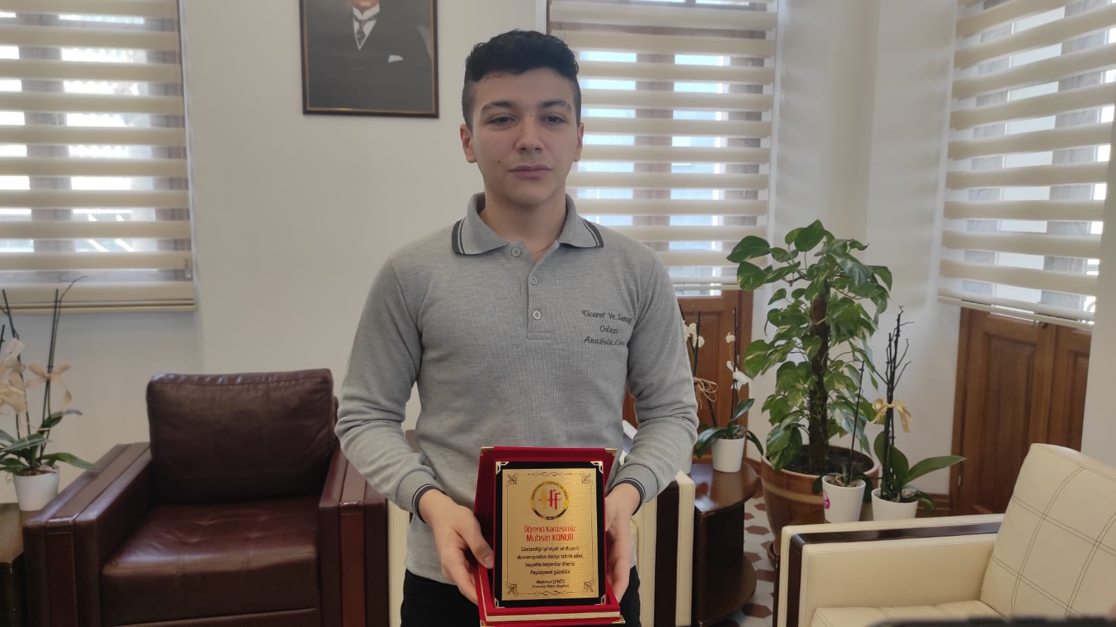 Herkese örnek olacak bu davranışıyla Fırıncılar Odası Başkanı Mahmut Şenöz’ün dikkatini çeken İskenderun Ticaret ve Sanayi Odası Anadolu Lisesi 11. Sınıf öğrencisi Muhsin Konur ödüllendirildi.