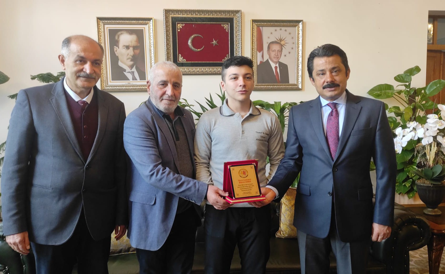 Kaymakamlık binasında gerçekleşen plaket takdim töreninde kısa bir konuşma yapan Kaymakam Demiryürek; “Öğrencimiz Muhsin, yaşıtlarına, büyüklerine aslında örnek olacak bir davranış sergiliyor. Askıda ekmek uygulamasına, kendi mütevazı harçlıklarıyla destek oluyor. Bu vesile ile sayın başkanımızdan teklif gelmişti. Gencimizin bu davranışını tebrik etme imkan sağladı bize, kendisine teşekkür ediyorum. Güzel davranışın hepimize, sadece kendi akranlarına yaşıtlarına değil bütün yetişkinlere, durumu yerinde olan herkese örnek olmasını diliyoruz” şeklinde konuştu ve Muhsin Konur’a bu anlamlı davranışından ötürü plaket takdim etti.