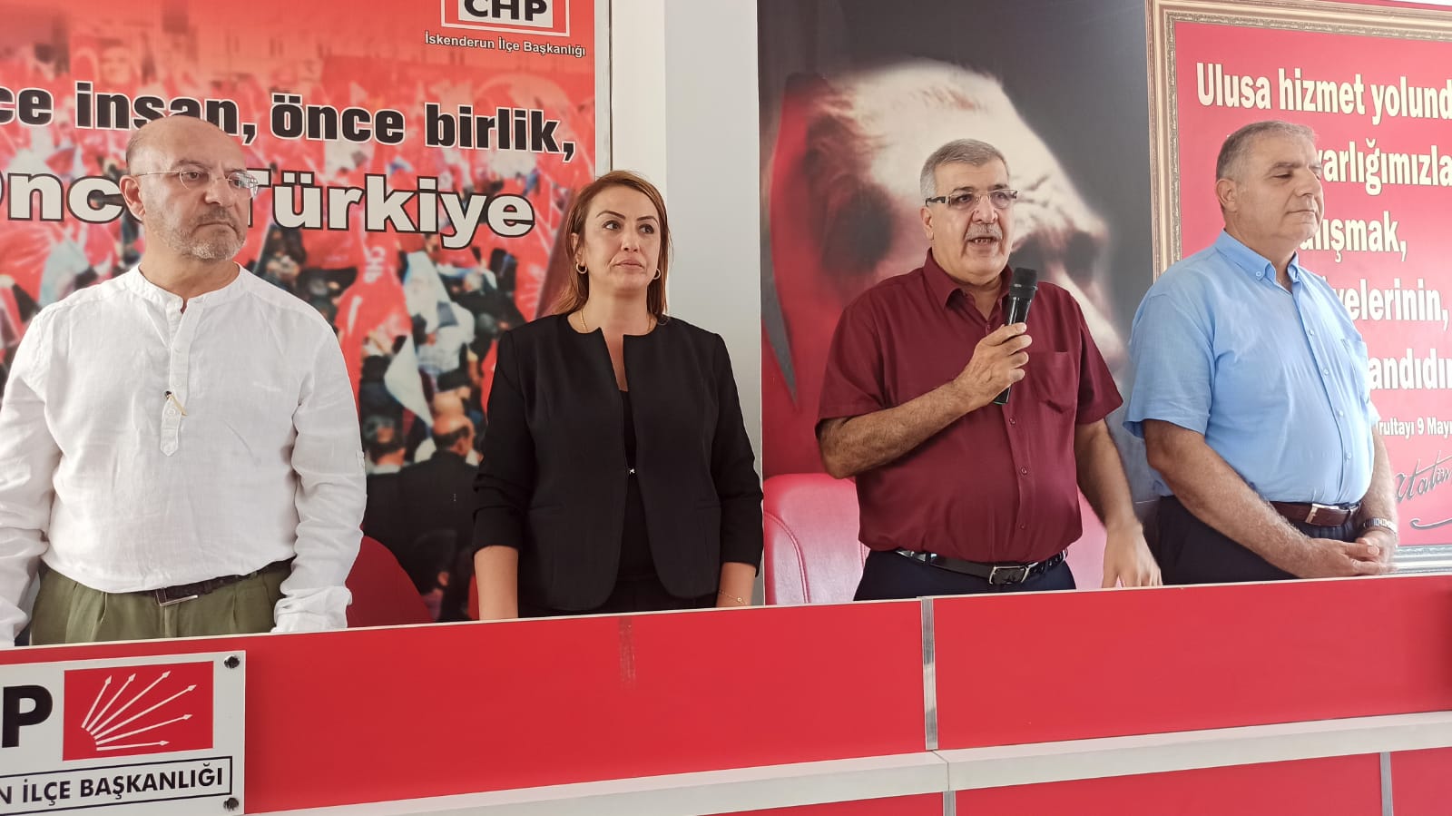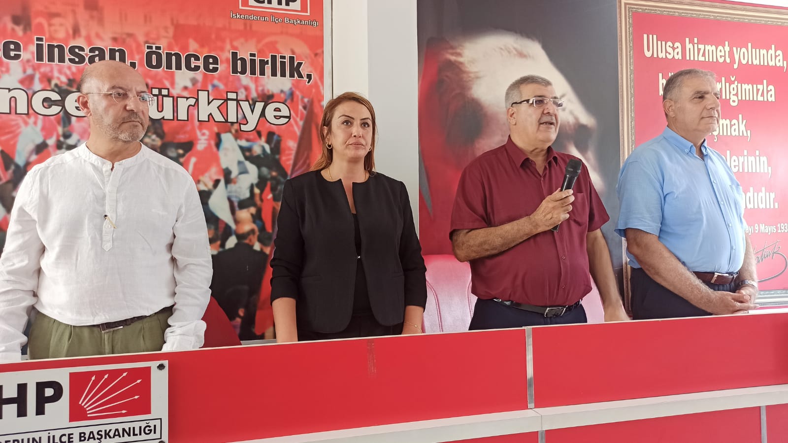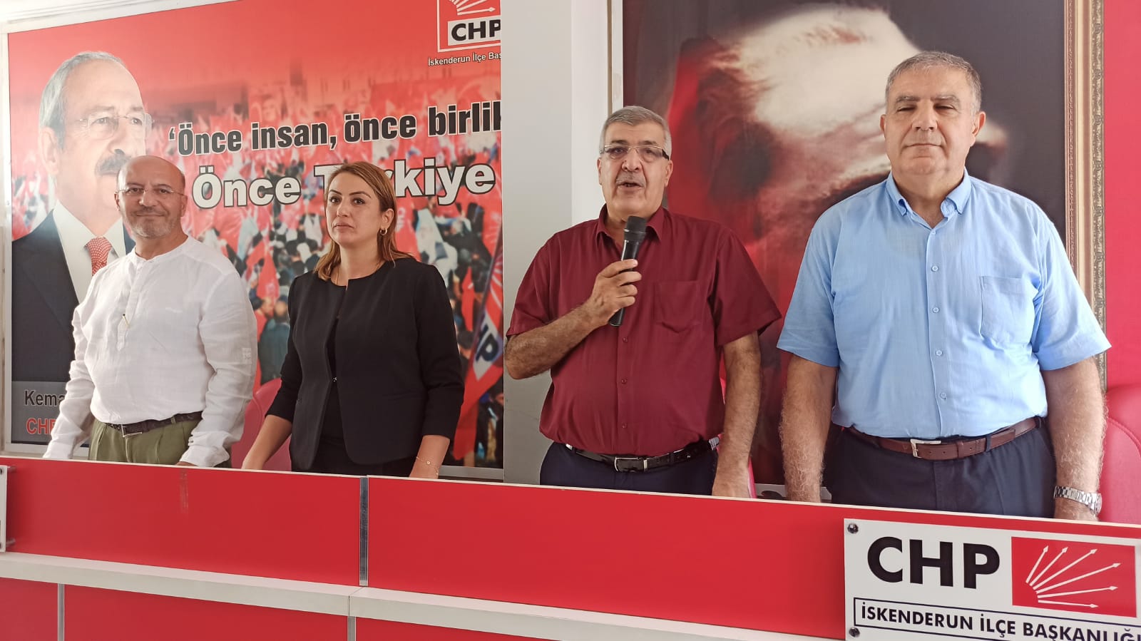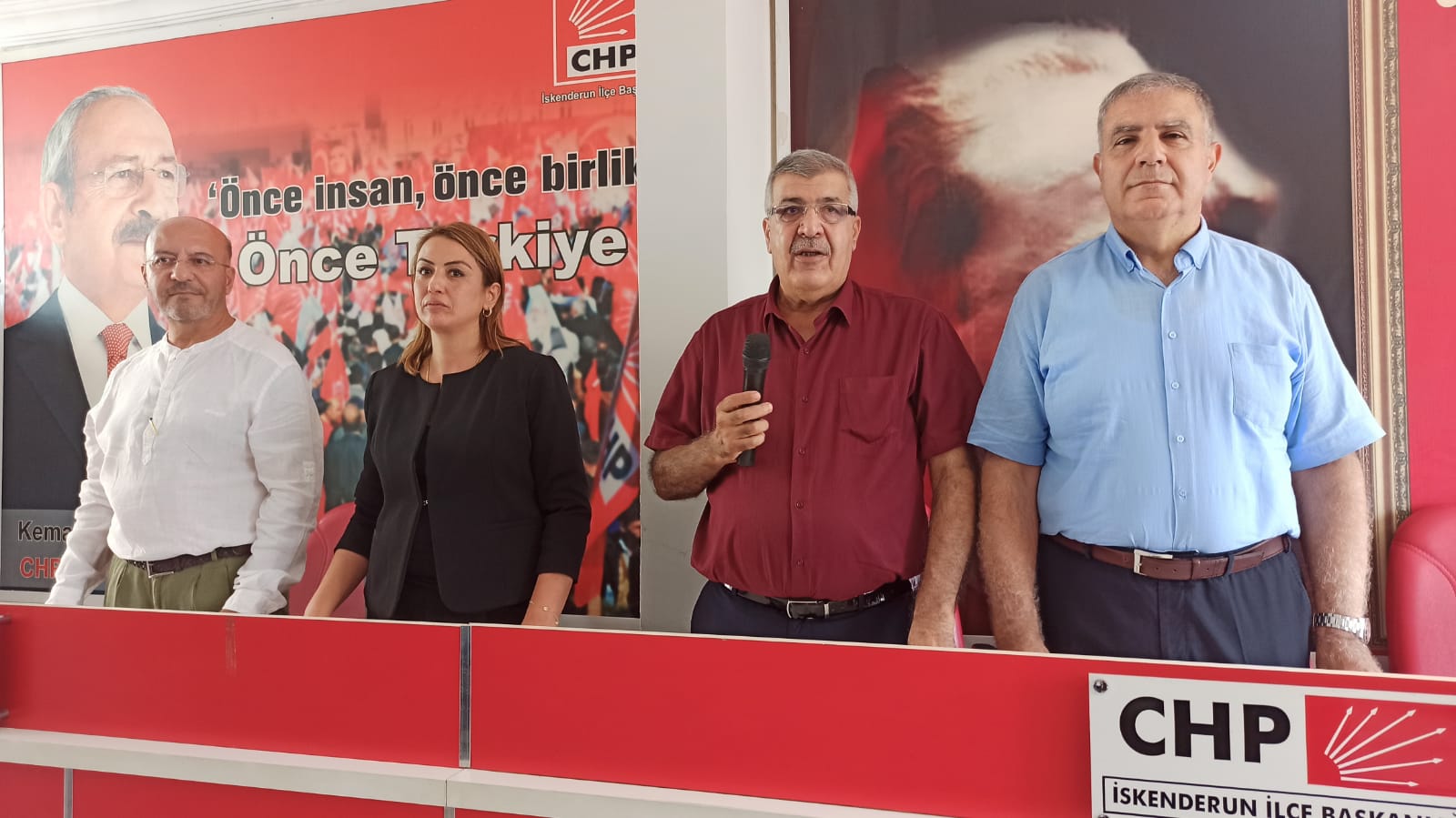 Cumhuriyet Halk Partisi (CHP) İskenderun İlçe Başkanı Yusuf Mansuroğlu, önümüzdeki haftasonu kutlayacakları partilerinin kuruluş yıldönümüne yönelik bir basın açıklaması yaptı. Parti binasında gerçekleştirilen basın açıklamasına CHP Hatay Milletvekilleri Nermin Yıldırım Kara ve Mehmet Güzelmansur da katılım gösterdi.