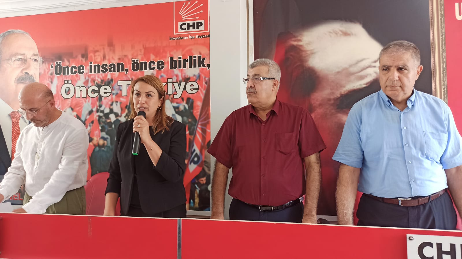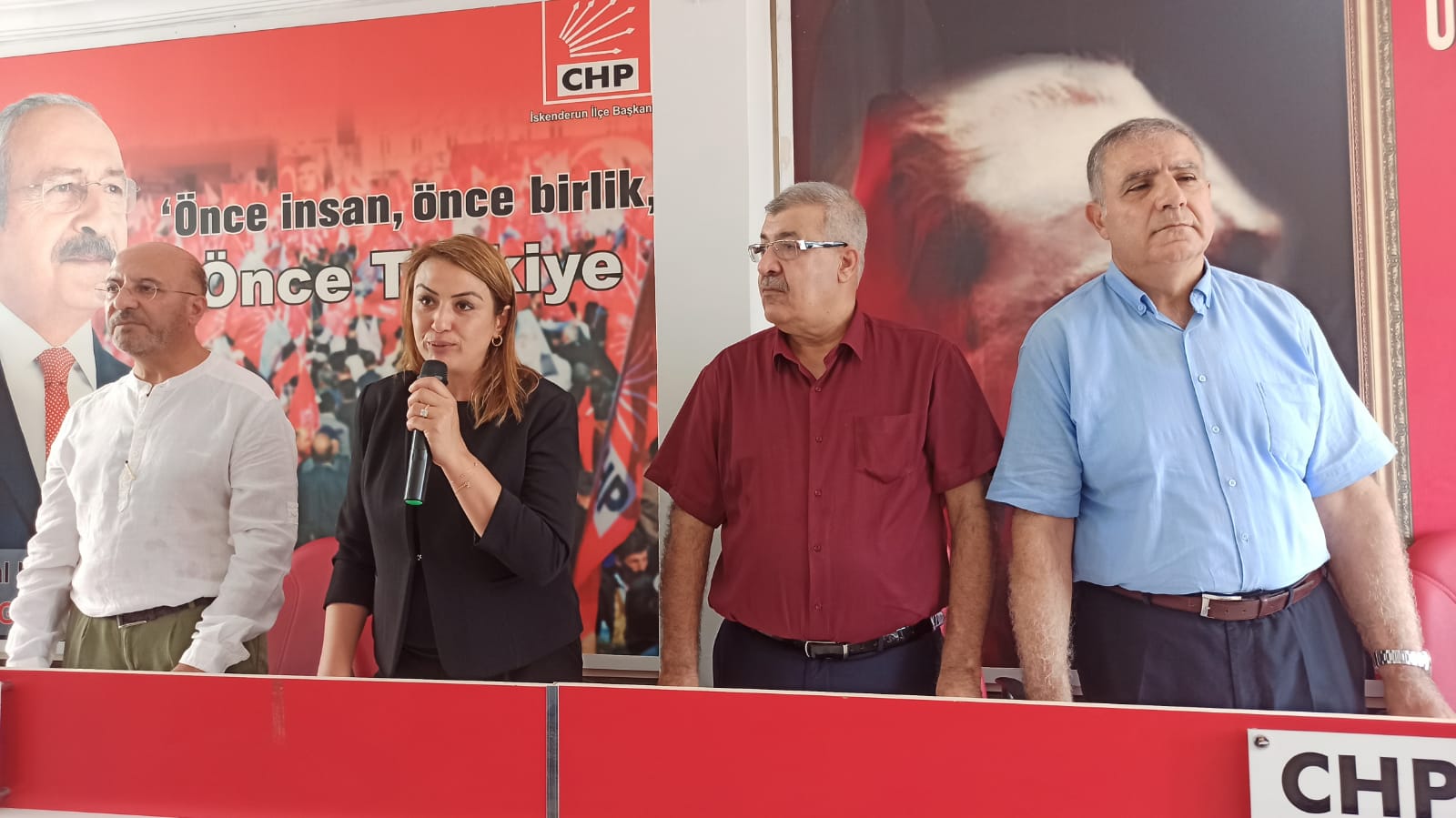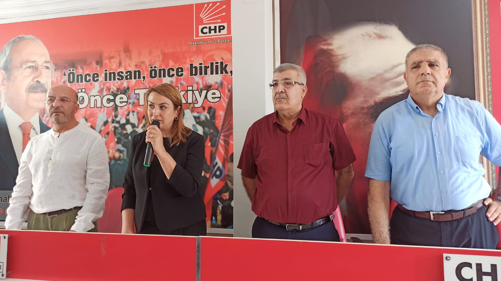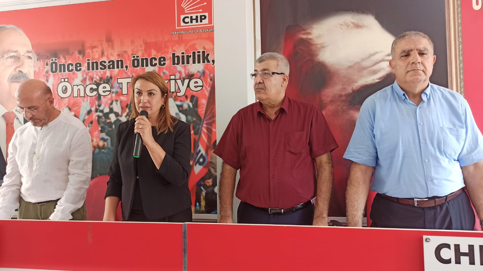 Cumhuriyet Halk Partisi (CHP) İskenderun İlçe Başkanı Yusuf Mansuroğlu, önümüzdeki haftasonu kutlayacakları partilerinin kuruluş yıldönümüne yönelik bir basın açıklaması yaptı. Parti binasında gerçekleştirilen basın açıklamasına CHP Hatay Milletvekilleri Nermin Yıldırım Kara ve Mehmet Güzelmansur da katılım gösterdi.
