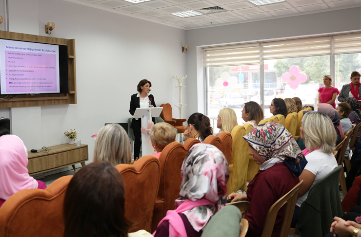 Hanımlar Lokali’nde gerçekleştirilen ve çok sayıda halk sağlıkçısı ile kadınların katılım gösterdiği etkinlikte ‘Meme Kanseri ve Tarama Programı’ adı altında bir sunum gerçekleştiren Prof. Dr. Nazan Savaş, meme kanserinin nasıl bir hastalık olduğu konusunda aydınlatıcı bilgiler paylaşarak katılımcılara erken teşhisin önemi konusunda uyarılarda bulundu.