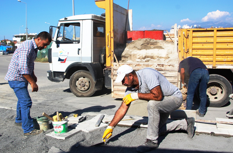 İskenderun Belediyesi, kaldırım yenileme ve çevre düzenleme çalışmalarını hızla sürdürüyor.