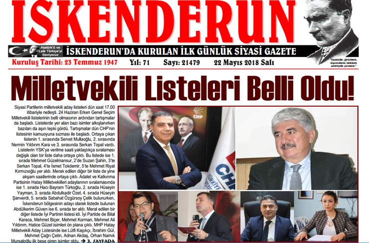 Tartışmalar dün CHP’nin listesinin kamuoyuna sızması ile başladı. Ortaya çıkan listenin 1. sırasında Servet Mullaoğlu, 2. sırasında Nermin Yıldırım Kara ve 3. sırasında Serkan Topal vardı. Listelerin YSK’ya verilme saati yaklaştıkça sıralaması değişik olan bir liste daha ortaya çıktı. Bu listede ise 1. sırada Mehmet Güzelmansur, 2’de Suzan Şahin, 3’te Serkan Topal, 4’te İsmet Tokdemir, 5’te Mehmet Riyat Kırmızıoğlu yer aldı. Merak edilen diğer bir liste de yine akşam saatlerinde ortaya çıktı. Adalet ve Kalkınma Partisinin Hatay Milletvekilleri adaylarının sıralamasında ise 1. sırada Hacı Bayram Türkoğlu, 2. sırada Hüseyin Yayman, 3. sırada Abdulkadir Özel, 4. sırada Hüseyin Şanverdi, 5. sırada Sabahat Özgürsoy Çelik bulunurken, İskenderun bölgesinin adayı olarak listede bulunan Abdülkerim Güven ise 6. sırada ter aldı. Meral edilen bir diğer listede İyi Partinin listesi idi. İyi Partide de Bilal Karaca, Mehmet Biçer, Mehmet Korman, Mehmet Ali Yıldırım, Hatice Güzel isimleri ön plana çıktı. MHP Hatay Milletvekili Aday Listesinde ise Lütfi Kaşıkçı, İbrahim Gül, Mehmet Çağrı Çetin, Adnan Akdaş, Orhan Namık Mursaloğlu ilk beşe giren isimler oldu.