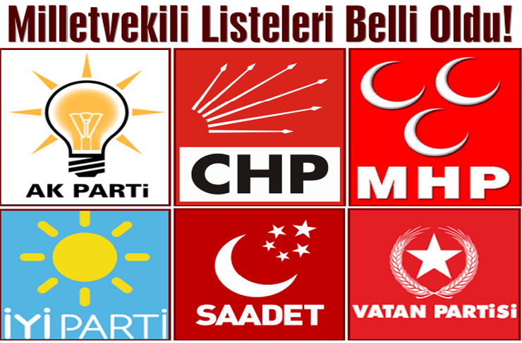 Adalet ve Kalkınma Partisi (Ak Parti), Cumhuriyet Halk Partisi (CHP), Milliyetçi Hareket Partisi (MHP), İyi Parti (İYİ), Saadet Partisi (SP) ve Vatan Partisi (VP)’nin dün mesai bitimine kadar Yüksek Seçim Kuruluna sundukları listeler aynen şöyle;