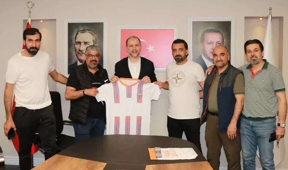 Akdeniz Masterler Federasyonu Başkan Yardımcısı Hıdır Özdemir ile İskenderun Veteranlar Spor Kulübü yönetici ve futbolcuları, Hatay Milletvekili Abdulkadir Özel’i ziyaret ederek forma hediye ettiler.