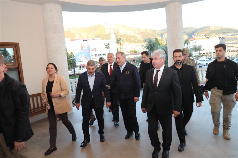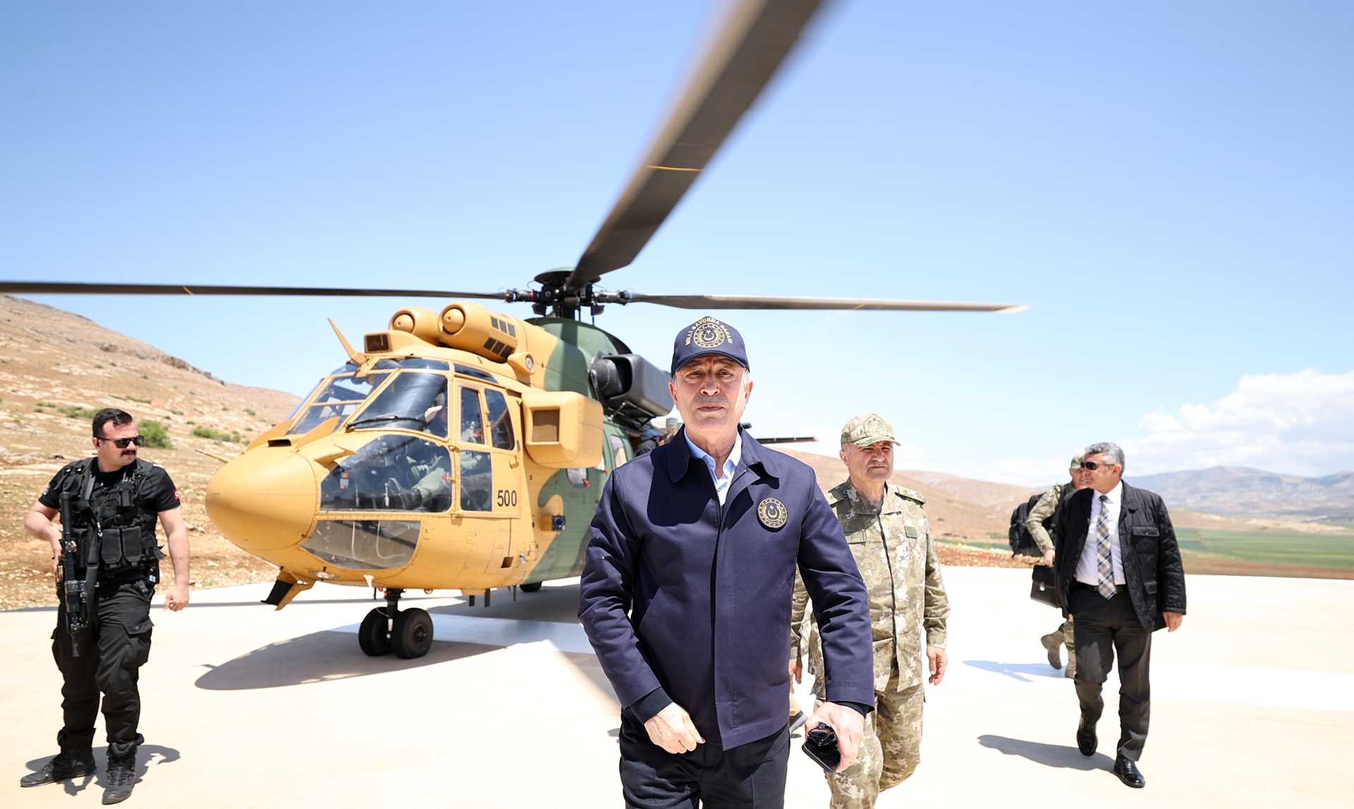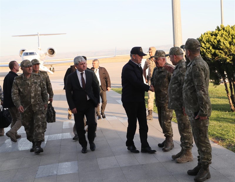 Milli Savunma Bakanı Hulusi Akar, Genelkurmay Başkanı Orgeneral Yaşar Güler ve Kara Kuvvetleri Komutanı Orgeneral Musa Avsever ile birlikte hudut güvenliğine yönelik inceleme ve denetlemelerde bulunmak üzere Hatay’a geldi.