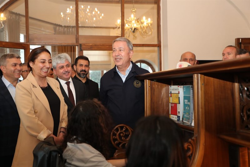 Kütüphane de ders çalışmakta olan öğrencilerle bir süre sohbet eden Bakan Akar, öğrencilere başarılar diledi. (Haber Merkezi)