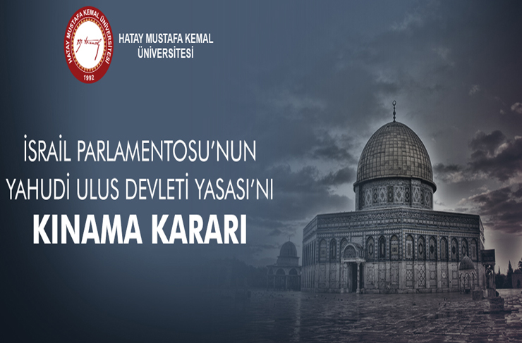 Mustafa Kemal Üniversitesi, İsrail Parlamentosunun ‘Yahudi Ulus Devlet Yasası’nı bir bildiriyle kınadı.