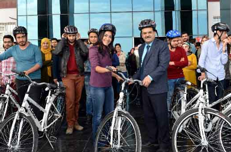 Hatay Valiliği İl Sağlık Müdürlüğünce Mustafa Kemal Üniversitesi (MKÜ) Rektörlüğüne hibe edilen bisikletlerin bir bölümü Rektör Prof. Dr. Hasan Kaya tarafından Fizik Tedavi ve Rehabilitasyon Yüksekokulu öğrencilerine temsili olarak dağıtıldı. Prof. Dr. Hasan Kaya aktif yaşam ve sağlıklı beden için düzenli olarak spor yapılması gerektiğine işaret etti.