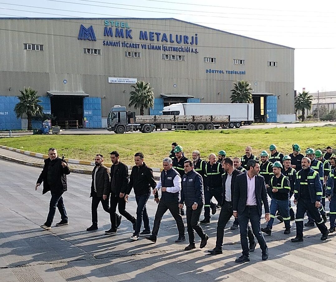 MMK’da 4 aydır devam eden Toplu İş Sözleşmesi (TİS) görüşmelerinden sonuç alınamaması üzerine işçiler yürüyüş eylemi başlattı. Özçelik-İş Sendikası İskenderun Şube Başkanı Mehmet Güngör, yaptığı açıklamada işverenin görüşmeler boyunca sürekli “kriz” bahanesi ile anlaşmaya yanaşmadığını ifade etti. Güngör açıklamasında şu ifadelere yer verdi: