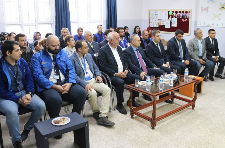 Modernevler İlkokulu Müdürü Necmettin Bişkin tarafından yapılan açılış konuşmasının müteakibinde, slayt eşliğinde okulun önceki durumu ile tadilat ve onarım sonrası durumu ile ilgili sunum yapıldı.