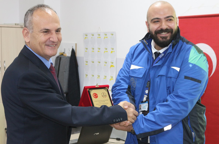 Birleşmiş Milletler Uluslararası Göç Örgütü Türkiye Temsilciliği Ofis Müdürü Aws Ezzi ve alt birim yetkilileri tarafından Birleşmiş Milletler Uluslararası Göç Örgütü işbirliğiyle ortak yürütülen sosyal projeler ve uygulanan çalışmalar hakkında bilgi paylaşımında bulunuldu.
