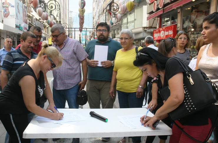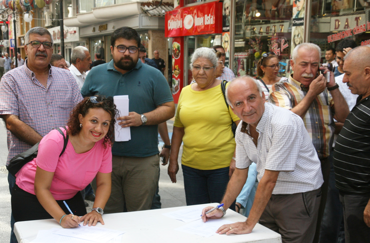 Yapılan konuşmaların ardından CHP’li gençler, havuzlu çarşıda açtıkları stantta gün boyu imza topladılar. (Haber: Helga TERBİYELİ)