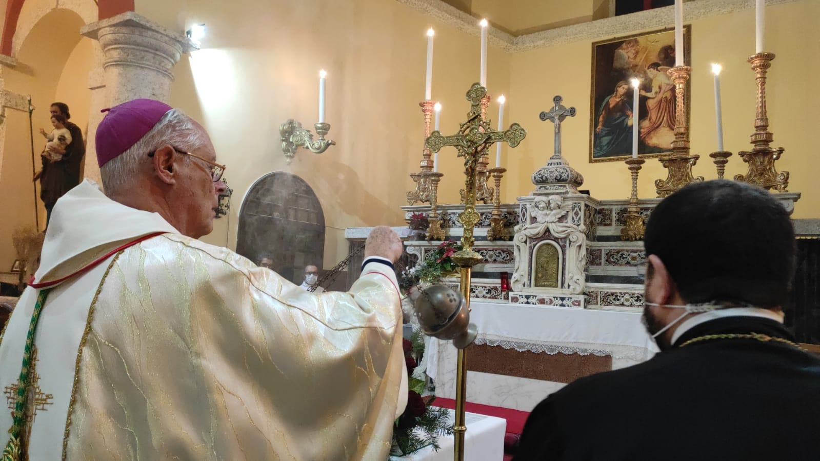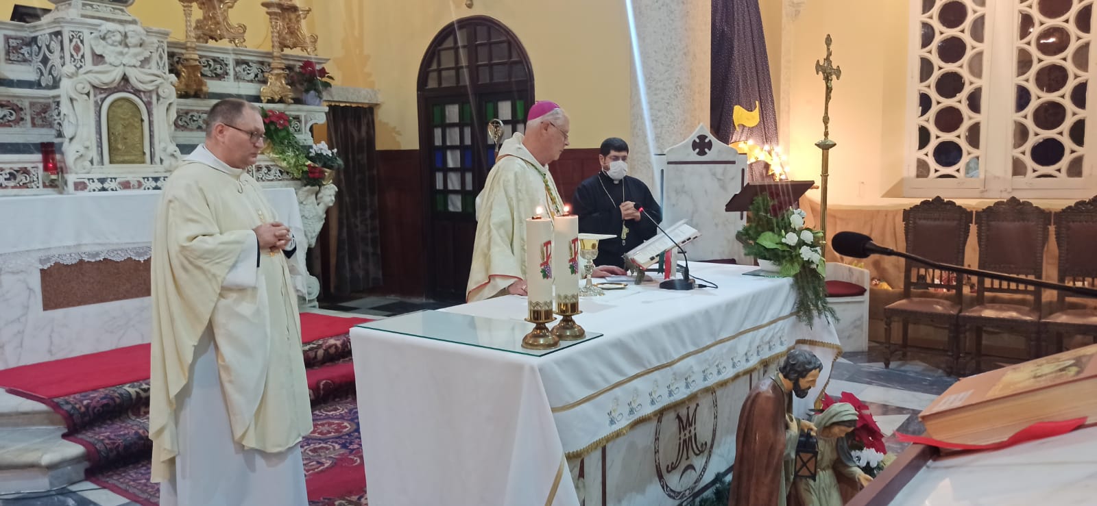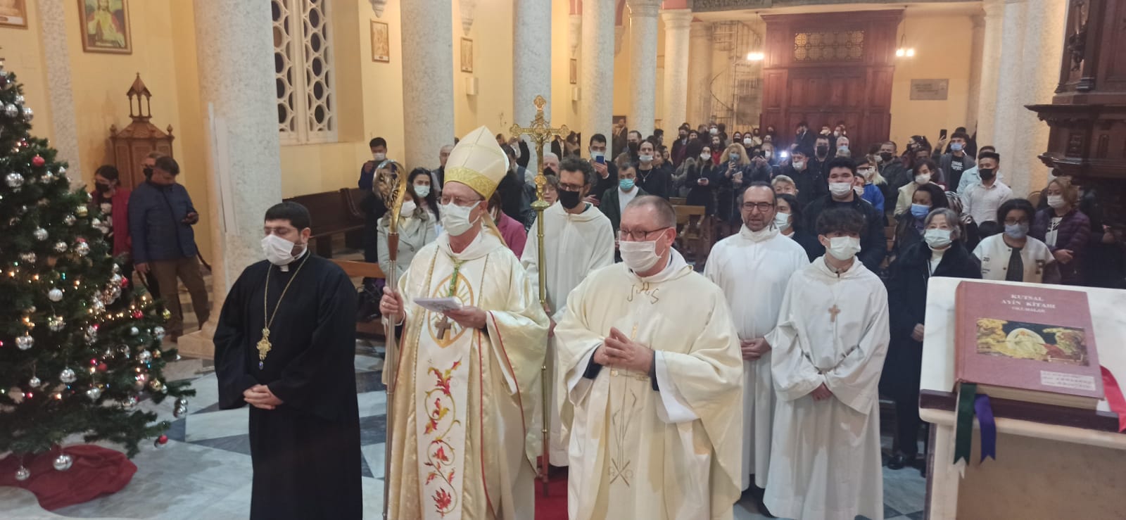 Ayinde İncil’in okunmasının ardından Episkopos Paolo Bizzeti, temsili bebek İsa heykelini kilise içerisinde kurulan mağaraya yerleştirdi ve önünde diz çökerek, Bebek İsa’yı buhur ile takdis etti.