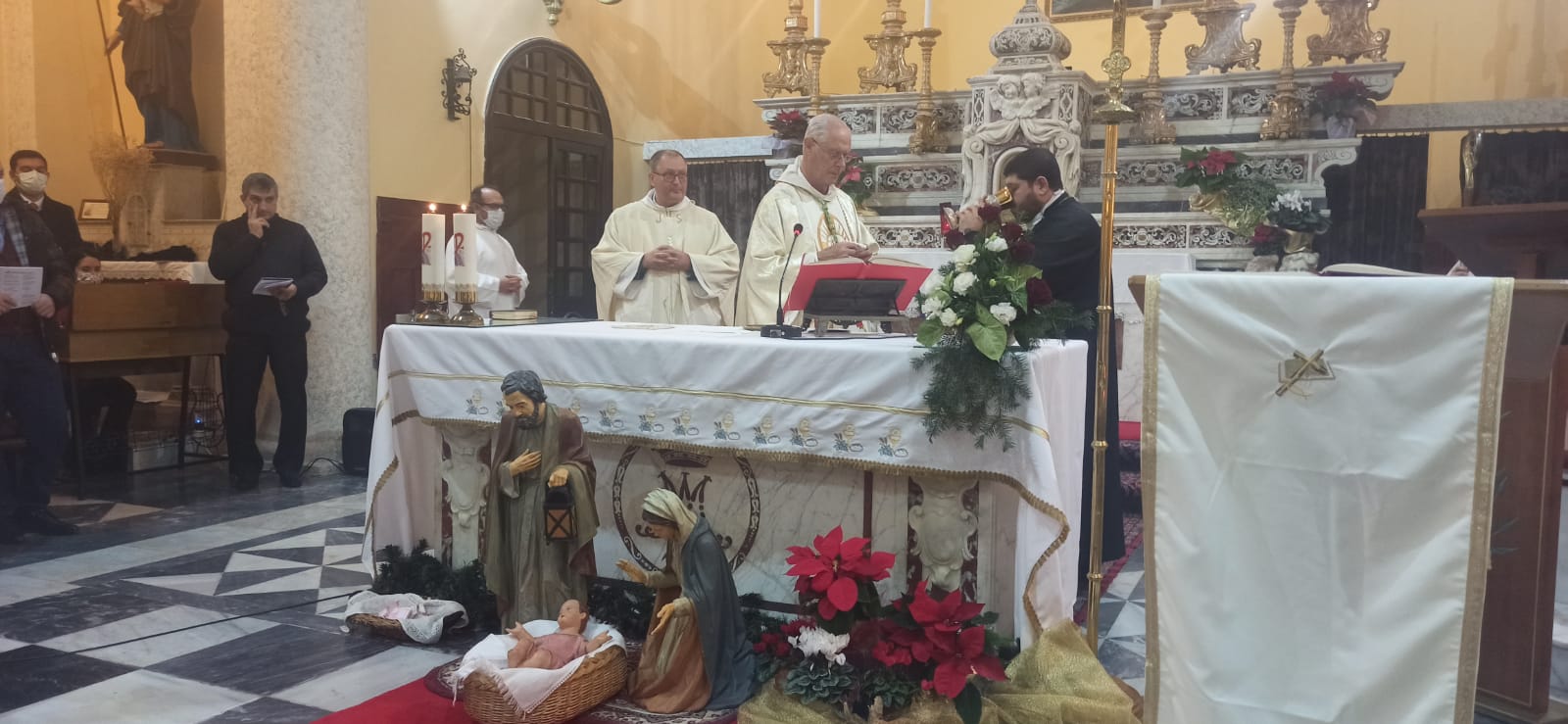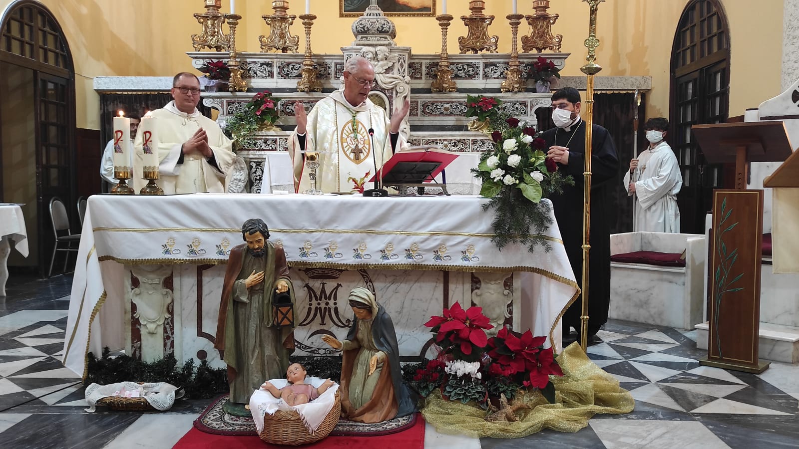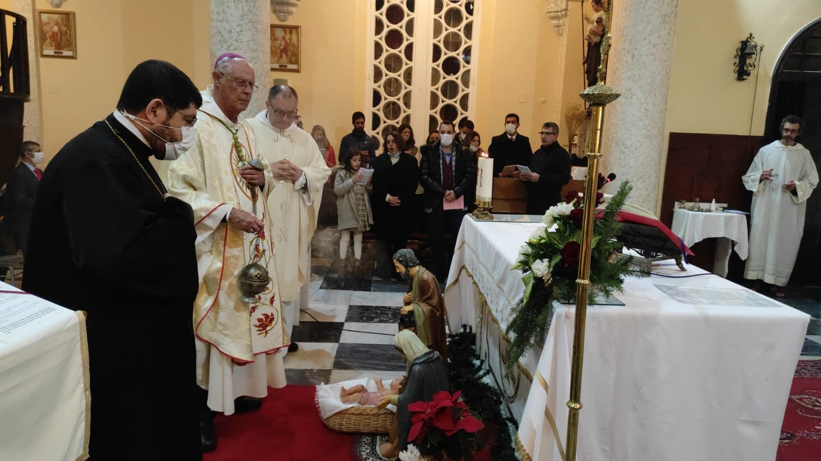 Ayinde İncil’in okunmasının ardından Episkopos Paolo Bizzeti, temsili bebek İsa heykelini kilise içerisinde kurulan mağaraya yerleştirdi ve önünde diz çökerek, Bebek İsa’yı buhur ile takdis etti.