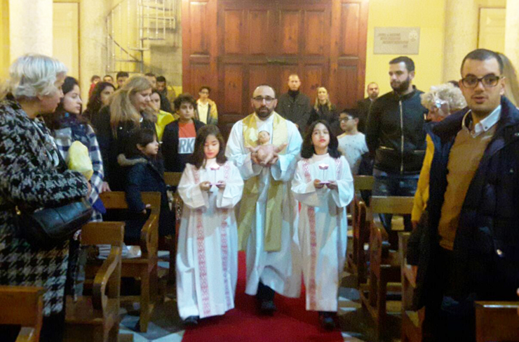 Ayin başlangıcında Episkopos Paolo Bizzeti, bebek İsa’yı, kilise içerisinde kurulan mağaraya yerleştirdi ve önünde diz çökerek Bebek İsa’yı buhur ile takdis etti. Daha sonra cemaat üyeleri de mağaranın içine girerek bebek İsa’nın önünde diz çöktü ve dua etti.