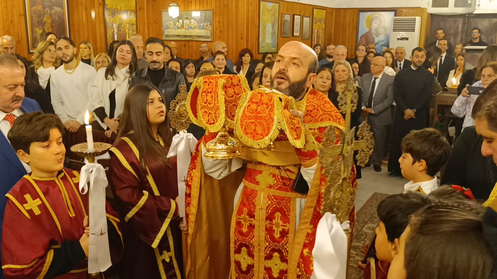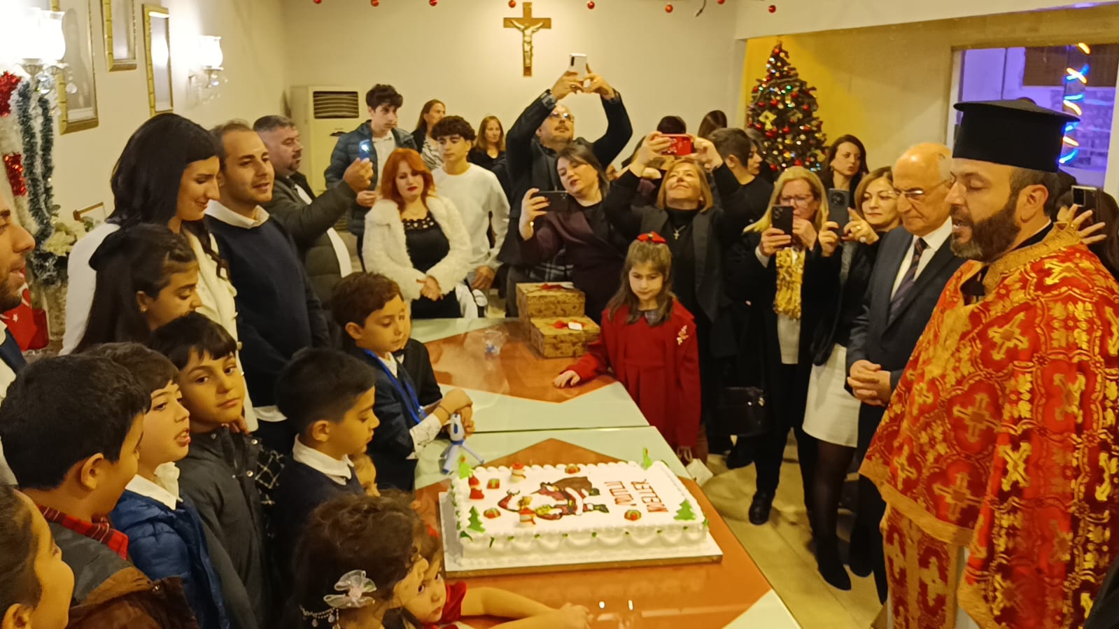 İskenderun Aziz Corç Rum Ortodoks Kilisesinde gerçekleştirilen Noel Ayinini, Kilise Pederi Yusuf Nicholas Papasoğlu yönetti. İskenderun’da yaşayan tüm Hristiyanların yoğun katılım gösterdikleri kutsal ayinde, ilahiler ve İncil’den bölümler okundu, mumlar yakılarak dünya barışı için dualar edildi.