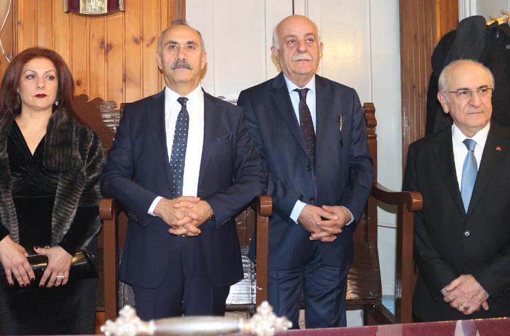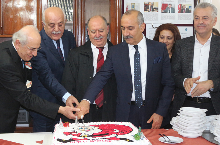 Can Teymur konuşmasının ardından, Papaz Dimitri Yıldırım, Arsuz Belediye Başkanı Nazım Culha ve İskenderun Belediye Başkanı Seyfi Dingil ile birlikte Noel pastasını kesti.
