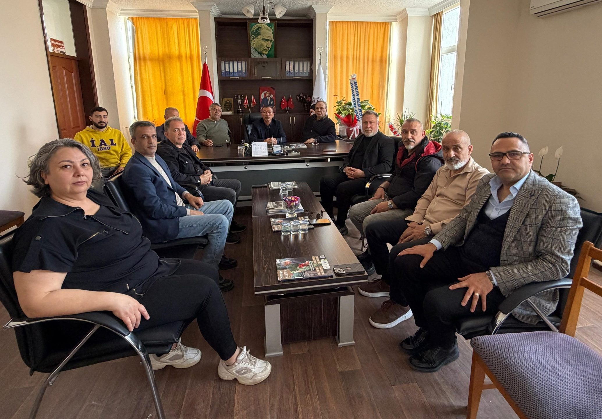 İskenderun Madeni İşler Esnaf ve Sanatkarlar Oda Başkanı Metin Ordulu ve yönetim kurulu üyeleri ile İskenderun Gazeteciler Cemiyeti heyetini karşıladı.