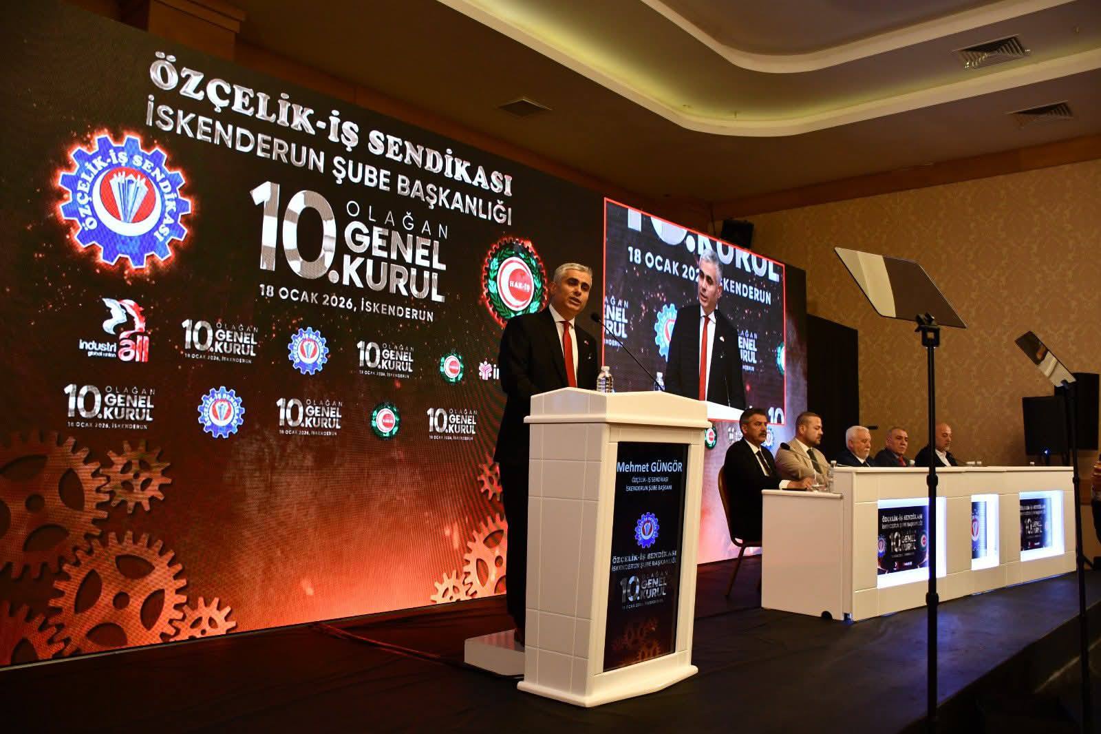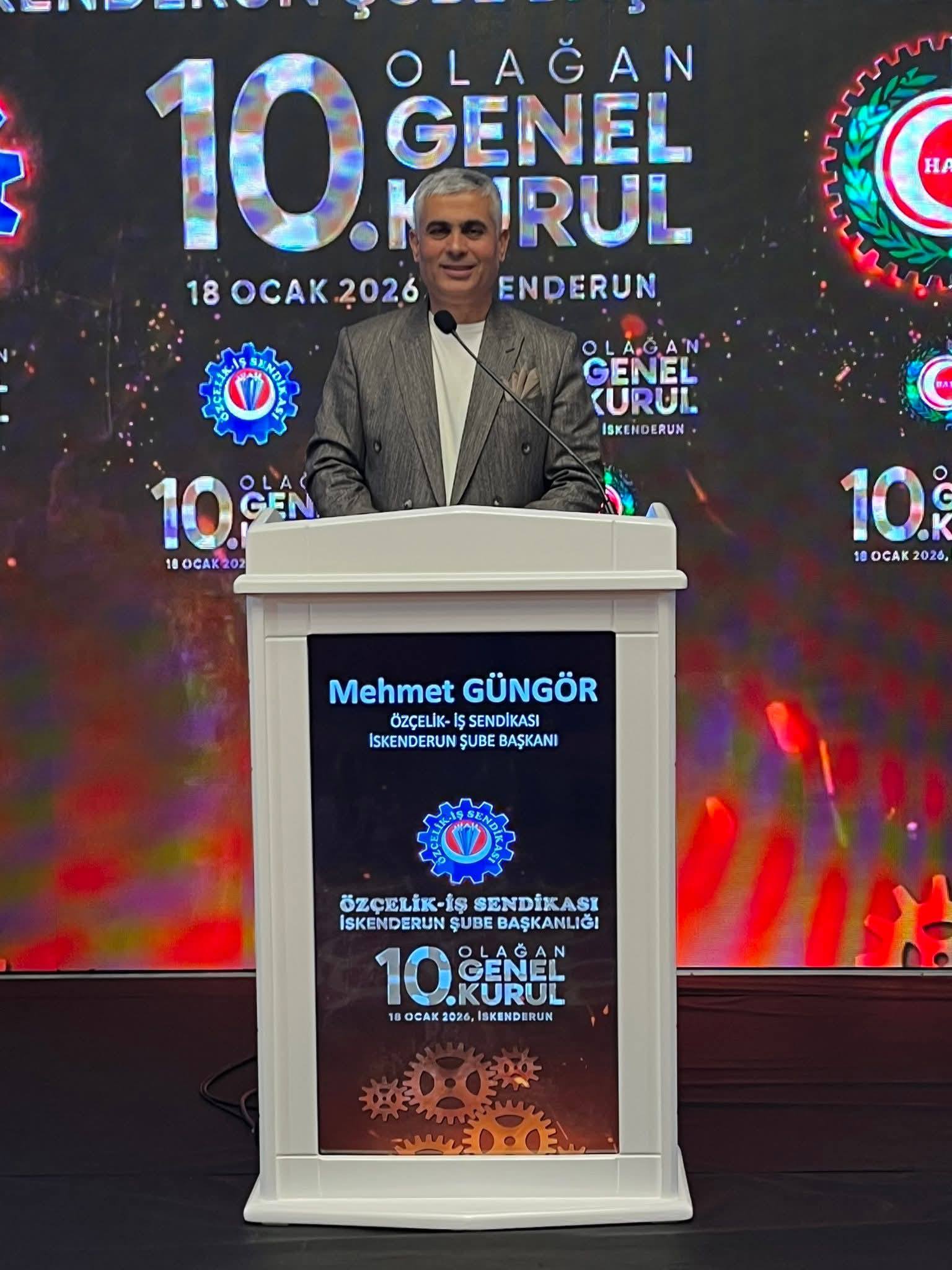 Genel kurulun açılış konuşmasını yapan Özçelik-İş Sendikası İskenderun Şube Başkanı Mehmet Güngör, çırak olarak başladığı İSDEMİR’de bugün emekçilerin temsilcisi olmanın gururunu yaşadığını ifade etti. Güngör, konuşmasında şu ifadelere yer verdi: “Bugün burada sadece bir konuşma yapmak için değil; yıllardır omuz omuza yürüdüğümüz bu onurlu yolculuğu değerlendirmek, birlikte aştığımız zorlukları hatırlamak ve geleceğimizi birlikte inşa etmek için toplandık.”