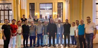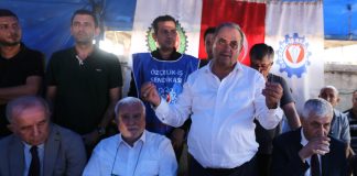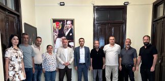 Özçelik-İş Sendikası İskenderun Şube Başkanı ve Hak-İş Konfederasyonu İl Başkanı Mehmet Güngör, yönetim kurulu üyeleriyle...