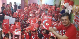 Türk Büyükleri Boyama Kitabı ile Türk bayrakları balonları çocuklara dağıtan...