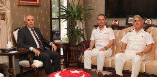 Hatay Valisi Erdal Ata, Sahil Güvenlik Bölge Komutanı olarak atanan Albay Oğuz Bavbek’i makamında ağırladı.