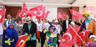 İskenderun Belediye Başkanı Seyfi Dingil, 21 Mart Dünya Down Sendromu Farkındalık Gününde, Uluslararası Down Sendromu Federasyonu Başkanı Muhammed Abdullah Tuncay ve Down sendromlu çocukları...