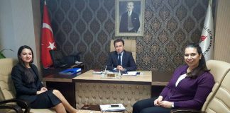 İskenderun Ticaret ve Sanayi Odası Genel sekreteri Figen Gül Dönmez ve SODES projesini yürüten Dilek Yalçın İskenderun İlçe Milli Eğitim Müdürü Mehmet Tuğrul’a nezaket...