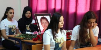 Reyhanlı ilçesinde, terör örgütü PKK/YPG'nin Afrin’den attığı roketler nedeniyle evinde uyurken şehit olan 17 yaşındaki Fatma Avlar'ın okulundaki sırasına, fotoğrafı ve karanfiller konuldu.