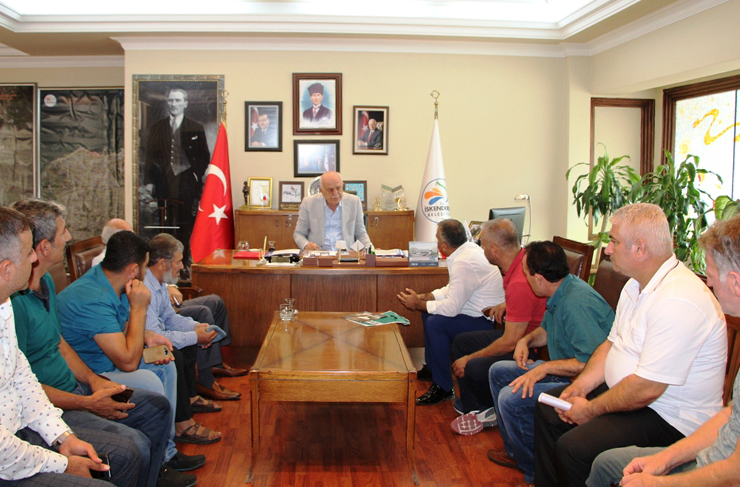 İskenderun Pazarcı Esnafları Dernek Başkanı Celal Şahin ve pazarcı esnafları İskenderun Belediye Başkanı Seyfi Dingil’i makamında ziyaret etti.