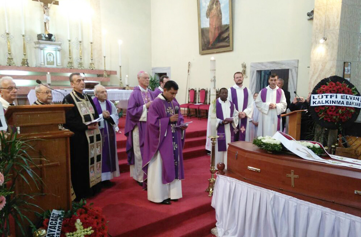 Geçtiğimiz hafta sonu vefat eden, Peder Roberto Ferrari için son görev yeri olan Mersin Katolik Kilisesinde cenaze ayini düzenlendi. Güney Bölgesindeki kiliselerin çoğunda görev yapan Ferrari’nin cenaze törenine, Mersin’in yanı sıra İskenderun ve Antakya Hristiyan cemaatinden kalabalık bir topluluk katıldı.