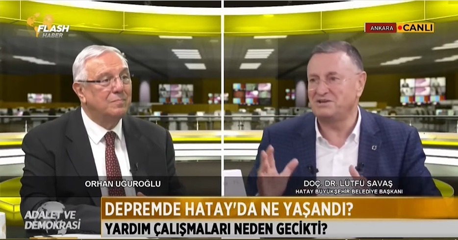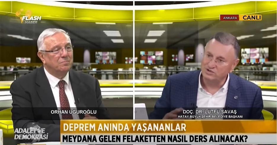 Hatay Büyükşehir Belediye Başkanı Doç. Dr. Lütfü Savaş, bir TV programında gazeteci Orhan Uğuroğlu’nun deprem sonrası Hatay’da yaşanan gelişmeler, seçim sonuçları, siyaset, Hatayspor ve gündeme dair sorularını yanıtladı. Lütfü Savaş, deprem bölgesinde bulunan şehirlerdeki su ve elektrik faturalarını affetme yetkisinin sadece Türkiye Büyük Millet Meclisi yetkisinde olduğunu söyledi.