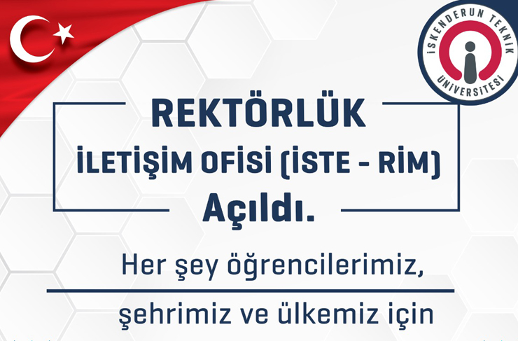 İskenderun Teknik Üniversitesi (İSTE) Rektörlük İletişim Merkezi hizmete açılıyor. İskenderun Teknik Üniversitesi (İSTE) Rektörlüğü ile birimlerine hızlı ve etkin bir şekilde ulaşılmasını hedefleyen İSTE Rektörlük İletişim Merkezi hizmete açılıyor. Yönetim ile iletişim kanallarının sürekli açık tutulması; İskenderun Teknik Üniversitesi (İSTE) öğrencilerinin istek, öneri, şikâyet ve beğenilerini yönetime hızlı ve kolay bir şekilde ulaştırmasına aracılık etmek amacıyla hizmete açılan Rektörlük İletişim Merkezine yapılan başvurular en kısa sürede değerlendirilecek ve cevaplandırılacak.